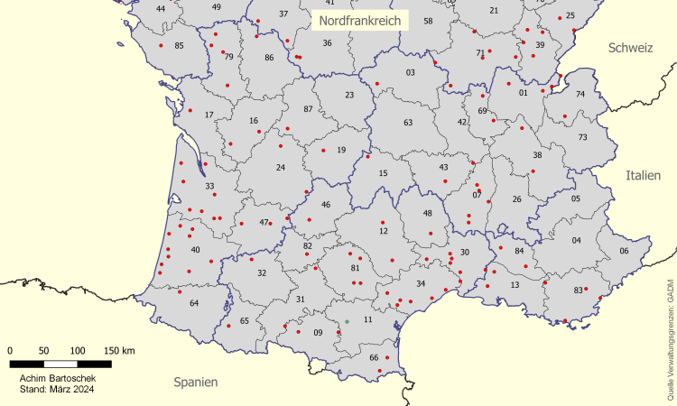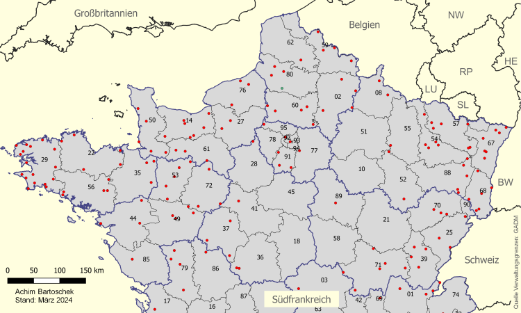 Eigentlich verbindet man Frankreich eher mit dem Rennradsport und weniger mit dem Radwandern die Tour de France ist da mit Sicherheit nicht ganz unschuldig. Dennoch sind in den letzten Jahren eine ganze Reihe sehr interessanter Bahntrassenradwege entstanden, die hier zusammen mit Wegen entlang von Kanälen als "Voie verte" bezeichnet werden. Die große Vielfalt hat sich mir erst relativ spät erschlossen und ist in der Gesamtsicht umso beeindruckender. Herausragende Informationsquellen sind die Website der Association Française de développement des Véloroutes et Voies Vertes www.af3v.org (beachten Sie die Datenblätter, mit denen zahlreiche Wege im Detail vorgestellt werden) sowie Pistes cyclables d'Alsace von Philippe Durand, der Fotografien von Bahntrassenwegen in Elsass, Lothringen und Südfrankreich zusammengestellt hat. Genauere Karten zu ausgewählten Wegen gibt es unter www.voiesvertes.com.