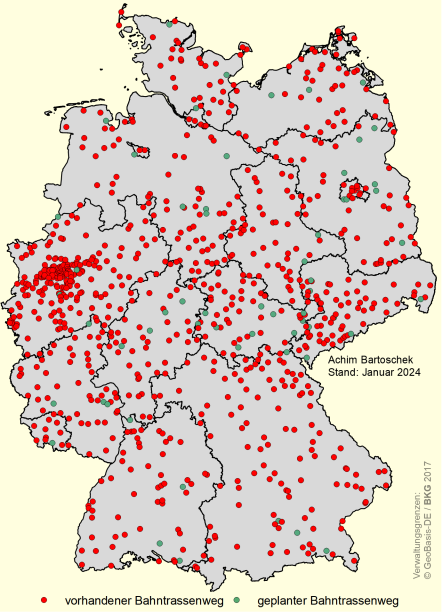 Übersichtskarte: Bahntrassenwege in Deutschland