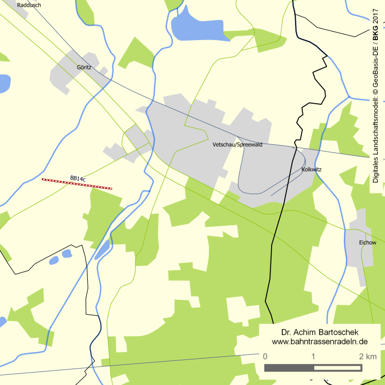 Beginn des asph. Bahntrassenwegs an der Verlängerung des Bolschwitzer Wegs südlich von Vetschau |