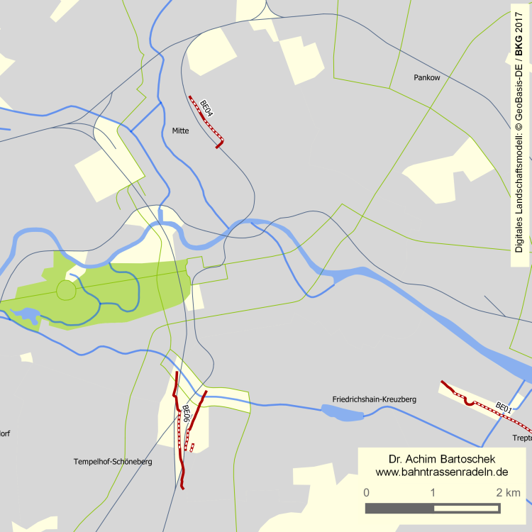 Kreis- und Gemeindezuordnung der Bahntrassenabschnitte