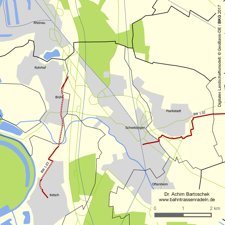 Mannheim-Rheinau – Ketsch; 6 km (1435 mm) |