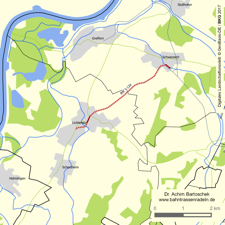 Von Lichtenau-Ulm trifft der asphaltierte Radweg auf die Trasse.