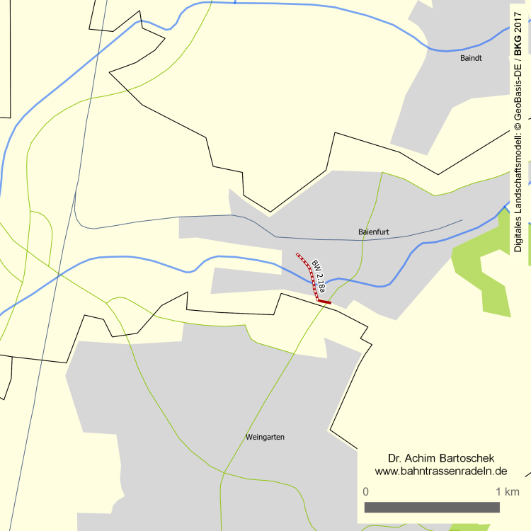 Streckenlänge (einfach): | ca. 0,5 km (davon ca. 0,4 km auf der ehem. Bahntrasse) |