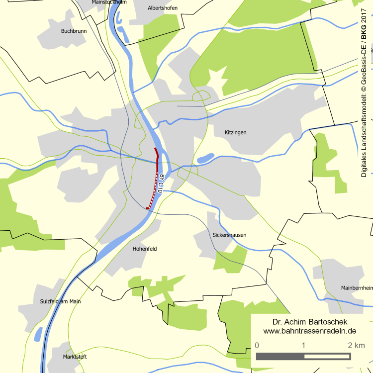 Kreis- und Gemeindezuordnung der Bahntrassenabschnitte