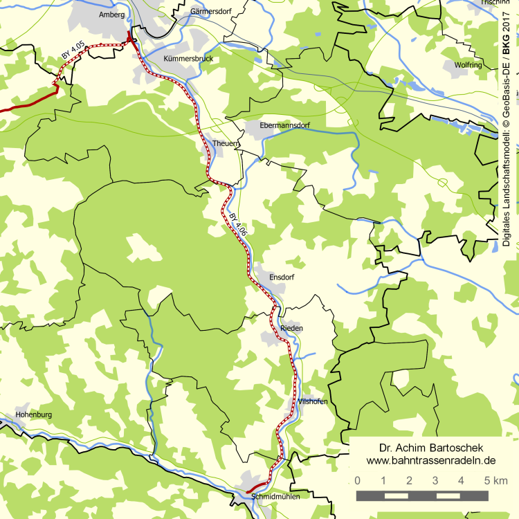 (abseits der Trasse: Amberg-Drahthammer –) Haselmühl – Theuern – Wolfsbach – Ensdorf – Rieden – Vilshofen – Schmidmühlen |