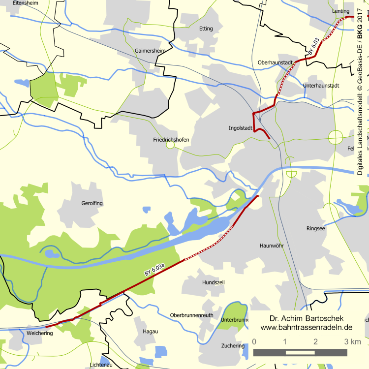 2008 wurde der Donauradwanderweg zwischen Buschletten und der Stadtgrenze zu Weichering auf den Bahndamm verlegt |