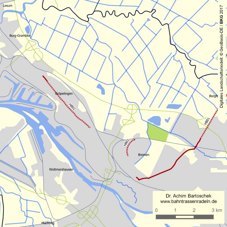 Eisenbahnstrecke: | 1740 / Bremen-Hastedt – Bremerhaven-Speckenbüttel; 74 km (1435 mm) alte Trassenführung zw. Walle und Oslebshausen; Kilometrierung: Hannover – Cuxhaven |