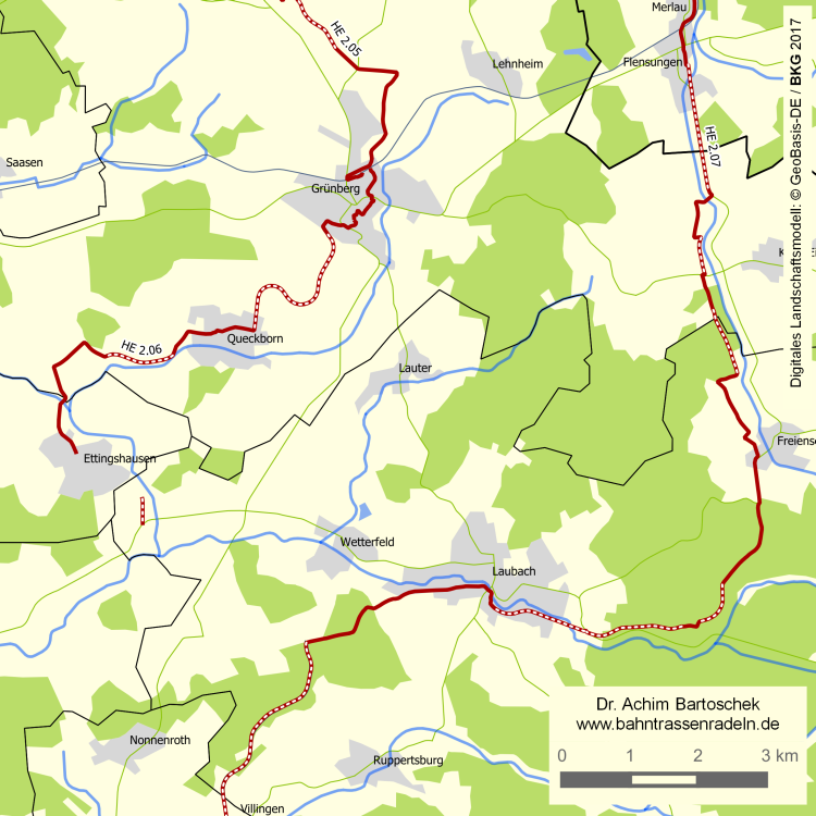 Kreis- und Gemeindezuordnung der Bahntrassenabschnitte