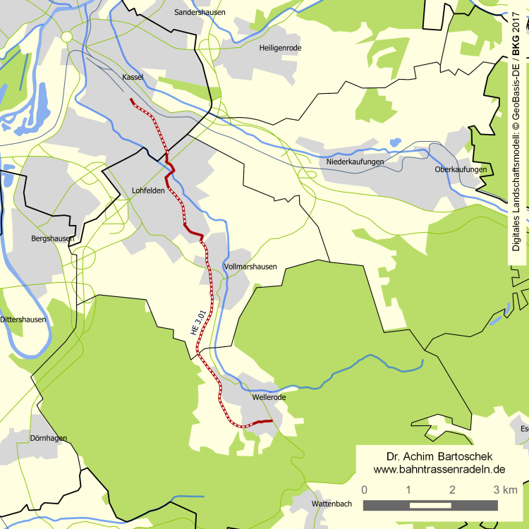 3905 (Söhretalbahn) / Kassel-Bettenhausen – Wellerode Wald; 10 km (1435 mm) |