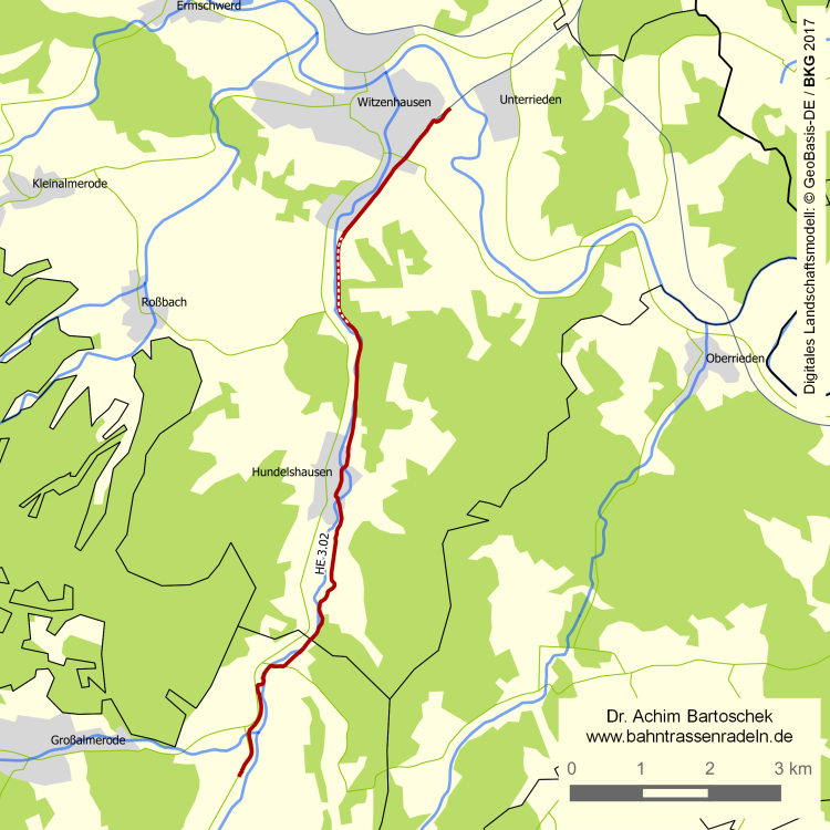 Witzenhausen (Anschluss Werraradweg) – Hundelshausen (– Trubenhausen – Viadukt Uengsterode) |