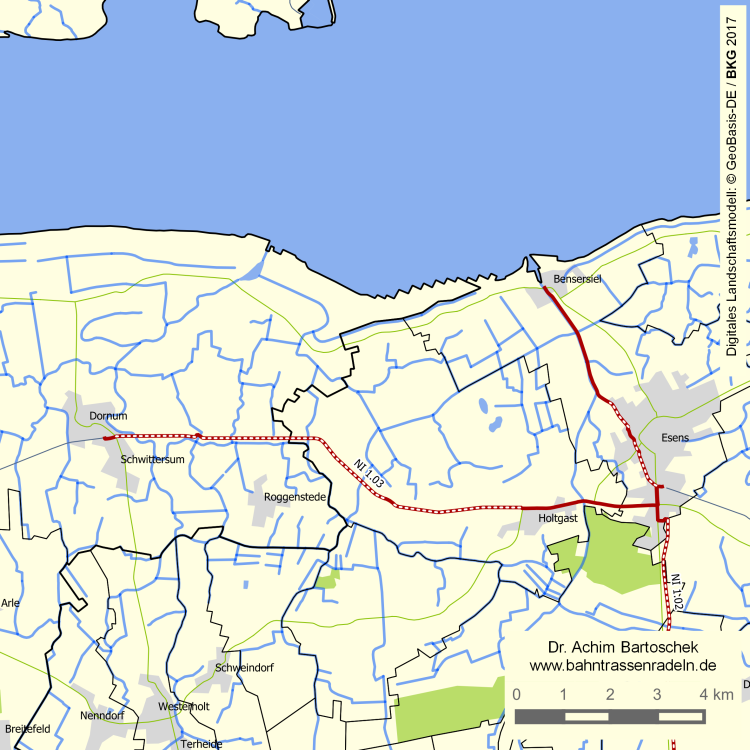 Esens Bahnhof – Holtgast – Fulkum – Dornum Bf (Museumsbahn) |
