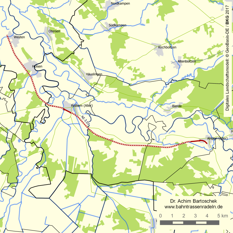 Westen – Hülsen – Rethem (Aller) – Bahnhof Hedern – Bahnhof Eilte – Ahlden (Aller) |