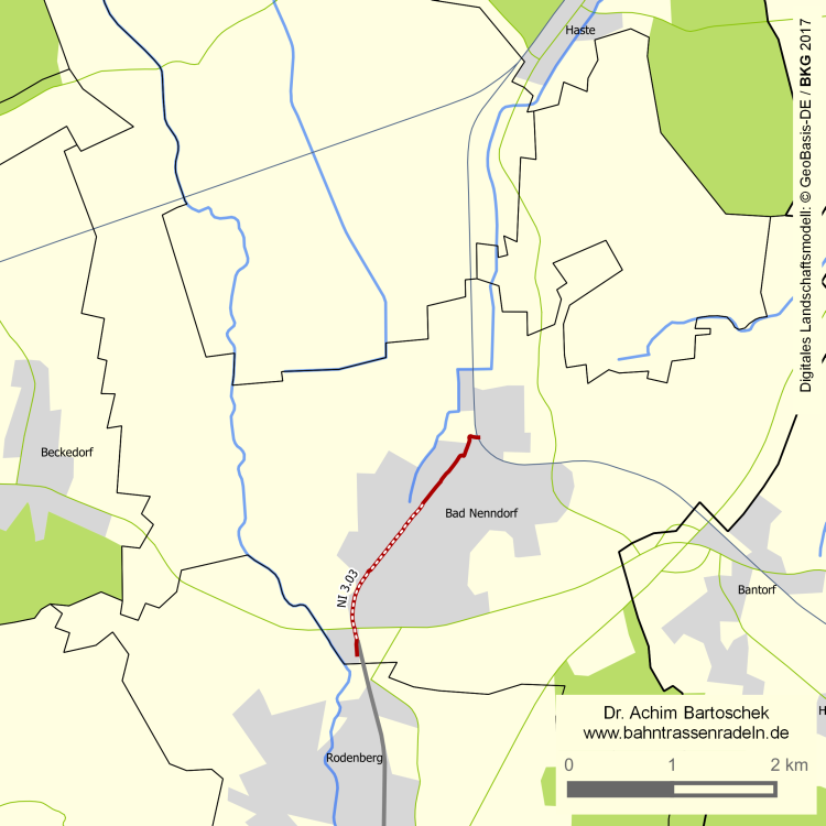 aus Rodenberg kommend südlich von BAD NENNDORF rechts versetzt auf die ehem. Bahntrasse |