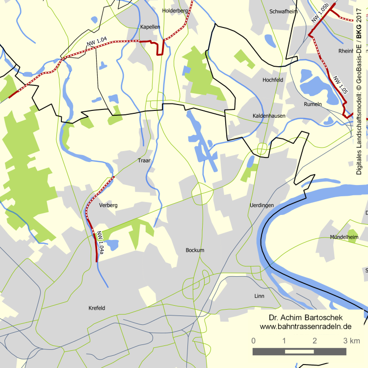 Krevag / Krefeld Hbf – Traar – Kapellen – Moers Hbf; 18 km (1000 mm) |