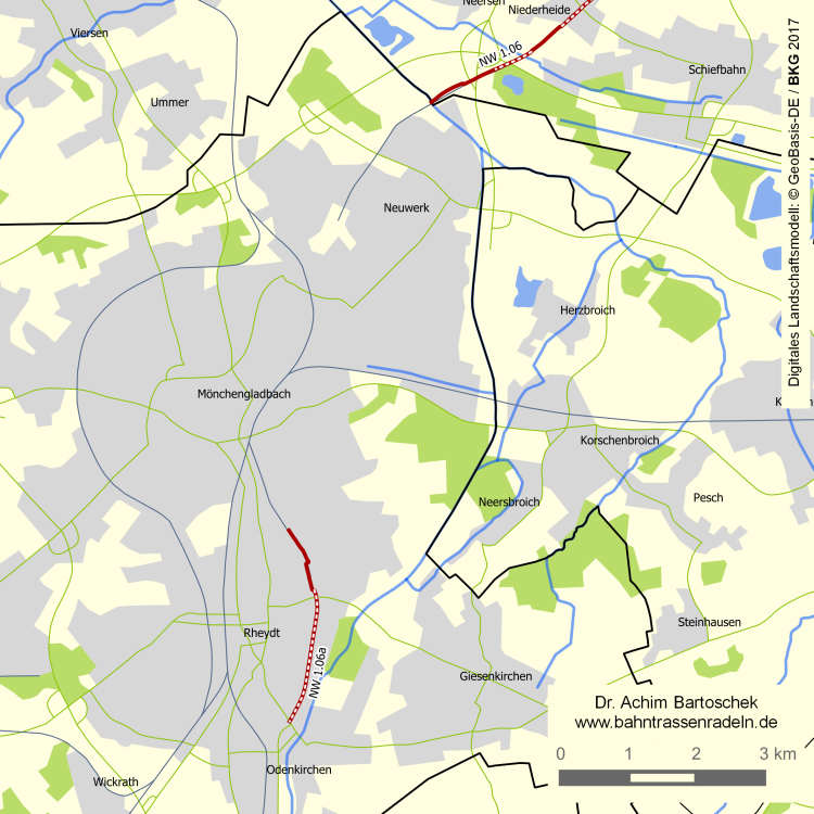 Stilllegung der Bahnstrecke: | 31. Januar 1985 (Pv), 1986 Abbau der Gleise zw. Geneicken und Mülfort |