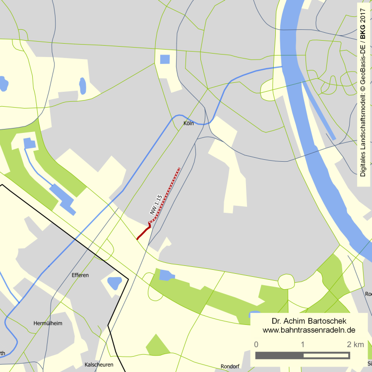 Gottesweg – Geisbergstraße (parallel zur Eisenbahnstrecke Köln-Süd – Hürth-Kalscheuren) |