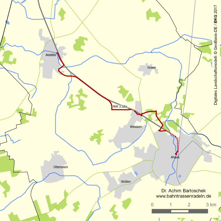 Erst innerhalb der Ahauser Ortsumgehung ist ein Bahntrassenweg entstanden, ...