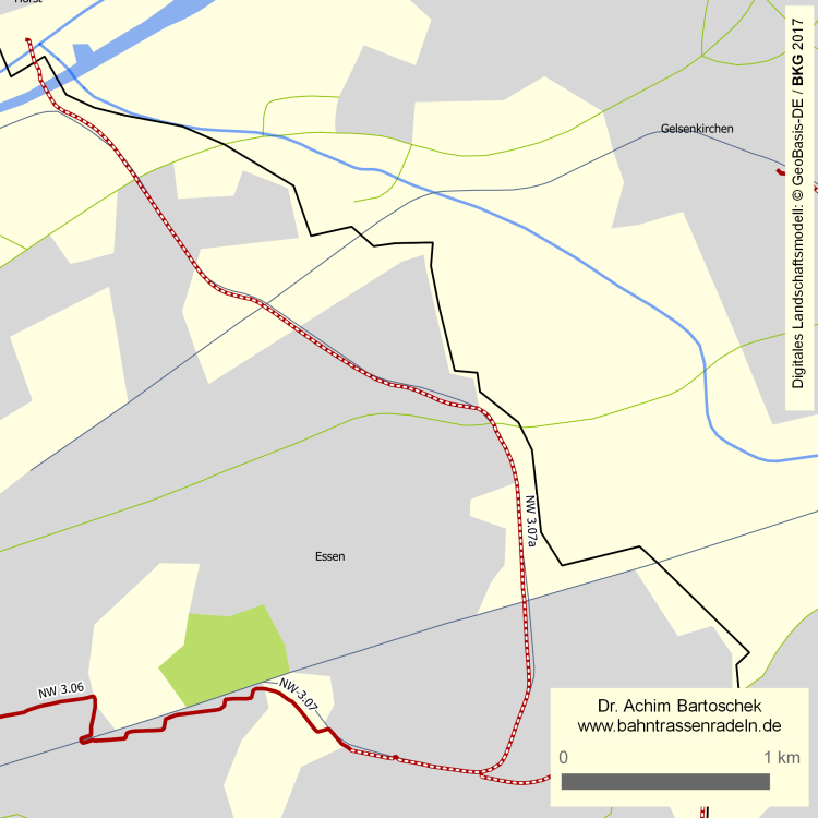 ... die nördlich gelegene Emscher sind Relikte der Bahn.