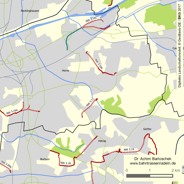 Kreis- und Gemeindezuordnung der Bahntrassenabschnitte