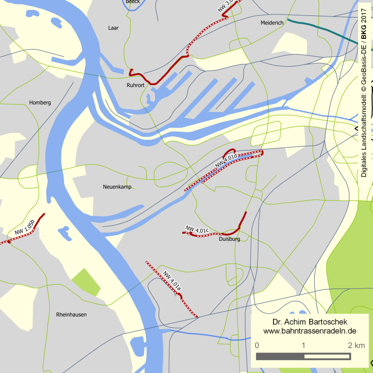 Route: | ehem. Industriegleis parallel zur Wörthstraße und weiter bis an den Bahndamm östlich des Bf Duisburg Hochfeld Süd |