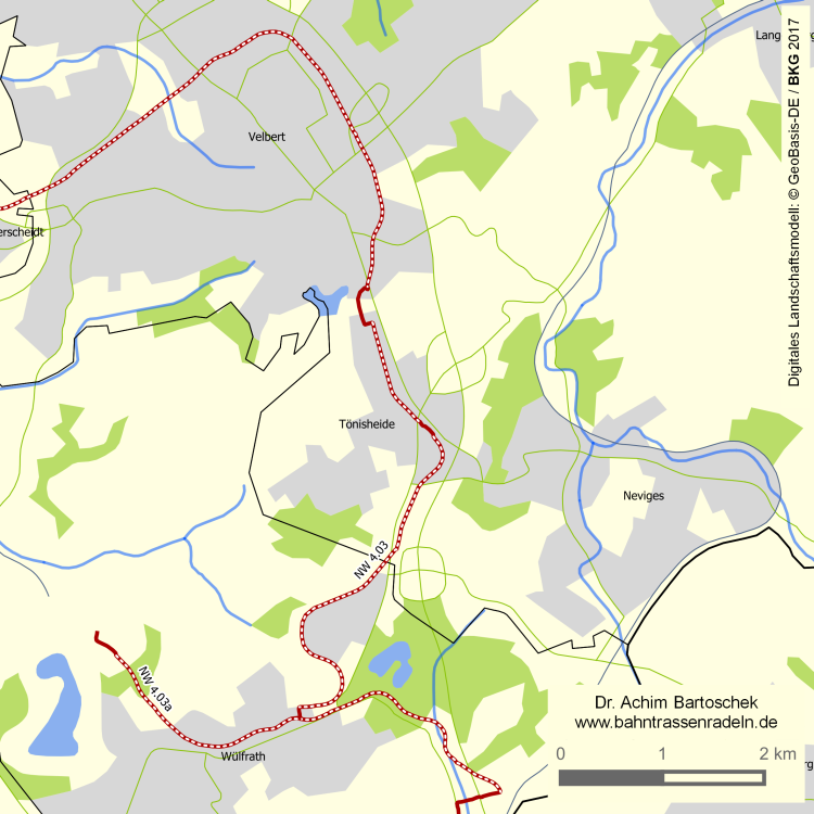 2,6 geradeaus: Wuppertal 16; Wülfrath-Düssel 6,5; PanoramaRadweg niederbergbahn (NW 4.03, FR Süd) |