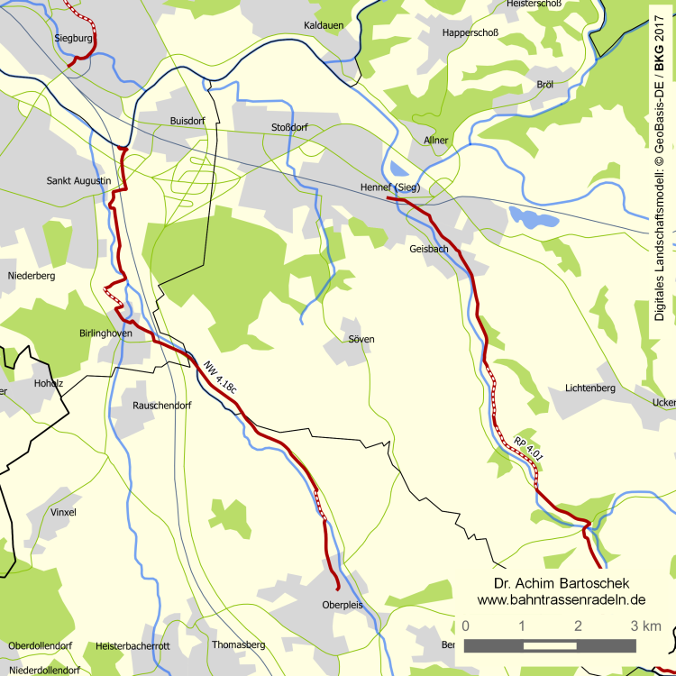 Eröffnung der Bahnstrecke: | 7. Mai 1893 (Niederpleis – Oberpleis), 21. Februar 1894 (Oberpleis – Herresbach), 1.Mai 1899 (Siegburg – Niederpleis), 1. Oktober1902 (Herresbach – Rostingen) |