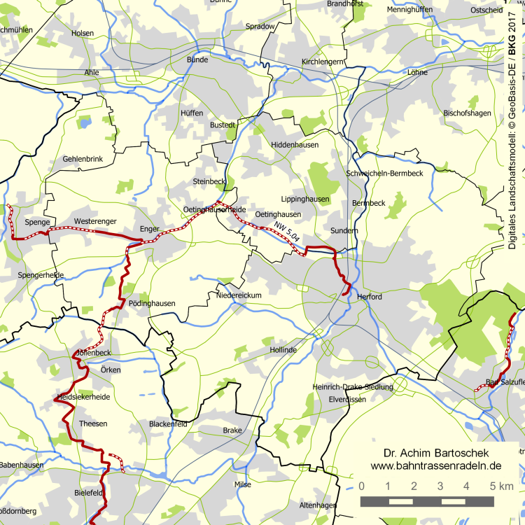 Abschnitte auf der Bahntrasse in Spenge und Enger asph., in Hiddenhausen und Bad Salzuflen wg. |