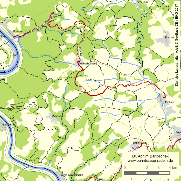 10,2 Die auf manchen Karten sogar als Radweg eingezeichnete Bahntrasse ist bis Dachsenhausen nicht passierbar. |
