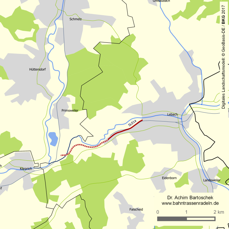 Eisenbahnstrecke: | 3274 / Wemmetsweiler – Lebach – Primsweiler – Büschfeld – Nonnweiler; 53 km (1435 mm) |