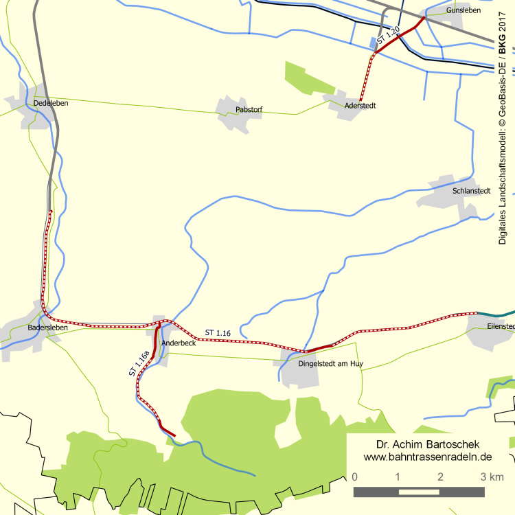 Kreis- und Gemeindezuordnung der Bahntrassenabschnitte