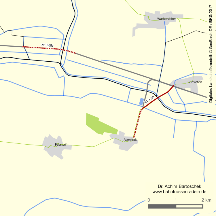 | Eisenbahnstrecke: | Gleisanschluss der ehem. Zuckerfabrik Aderstedt; 2,9 km (1435 mm) |