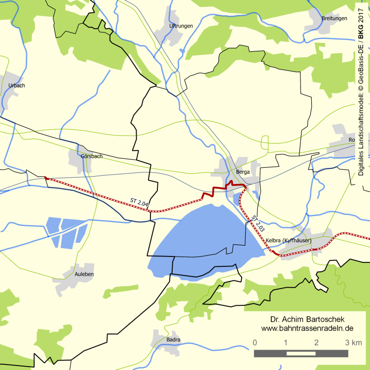 6343 / Halle (Saale) – Eichenberg; 170 km (1435 mm); alte Streckenführung im Bereich der Talsperre Kelbra: 6 km |