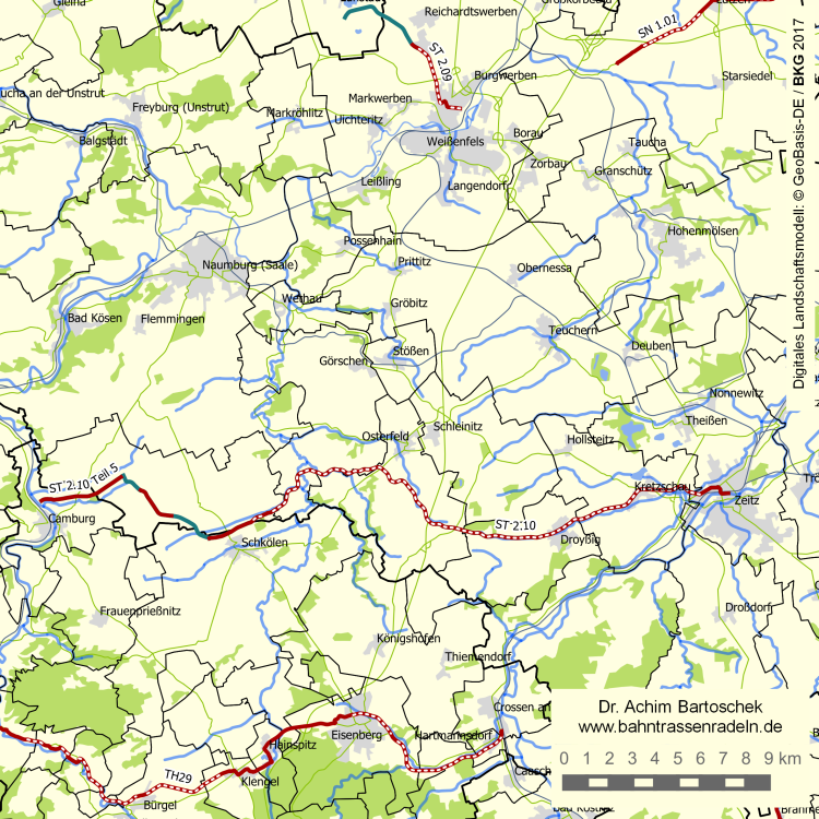Route: | Zeitz – Grana – Kretzschau – Droyßig – Weickelsdorf – Osterfeld – Utenbach – Schkölen (im Bau / geplant: – Molau – Crauschwitz – Tümpling – Camburg) |