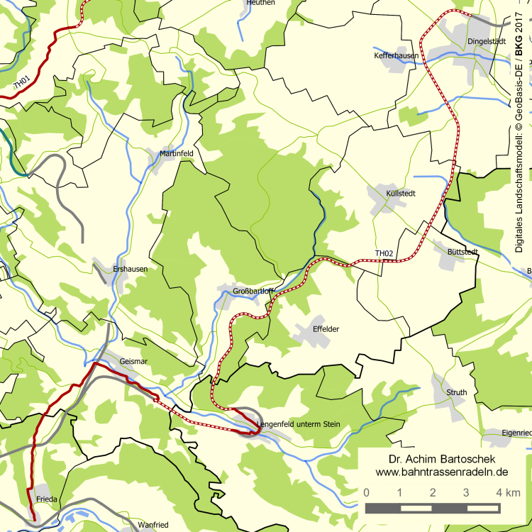 | Route: | (abseits der Trasse: Frieda – Großtöpfer – Geismar) – Lengenfeld unterm Stein – Küllstedt – Dingelstädt |