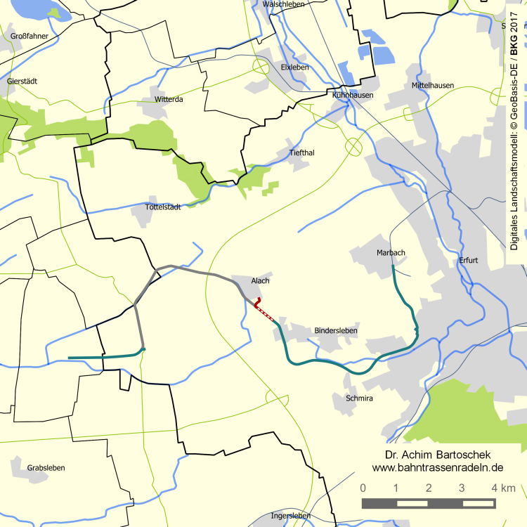 Streckenlänge (einfach): | ca. 0,6 km; weitere 10,6 km geplant Trasse zwischen Alach und Ermstedt zum größten Teil untergeackert |