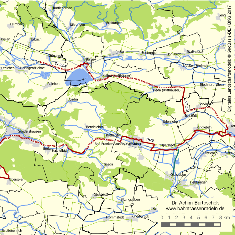 Für den Lückenschluss zur Unstrut wurde bei Esperstedt ein kurzes Stück der Strecke TH 26a ausgebaut (Freigabe Bad Frankenhausen – Artern: 17. Mai 2015). |