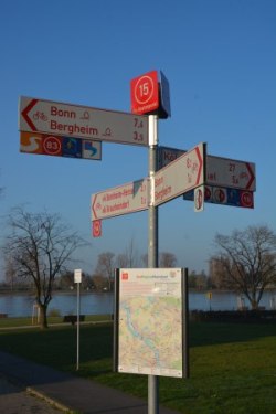 Die jüngste große Neubeschilderung wiederum entsprechend HBR erfolgte mit der Einführung des Knotenpunktsystems der RadRegionRheinland. Mit der Knotenpunktroute von Niederkassel über Uckendorf nach Kriegsdorf ist so eine weitgehend neue Querverbindung hinzugekommen.